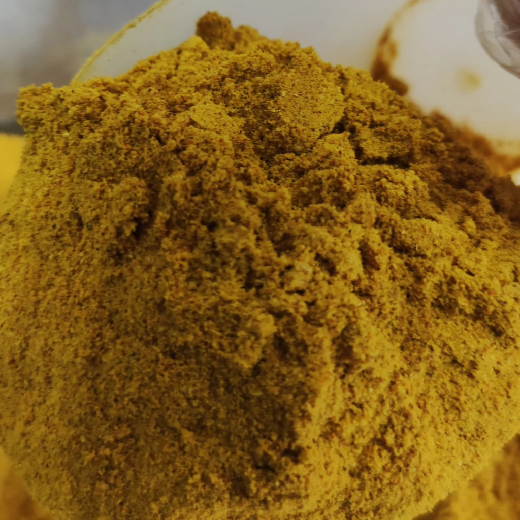 Alguns dos ingredientes são Gengibre, Pimentas, Canela, Cominho, Cravo, Cúrcuma e Coentro. Pode ser usado para temperar Frango, Carnes, Molhos.